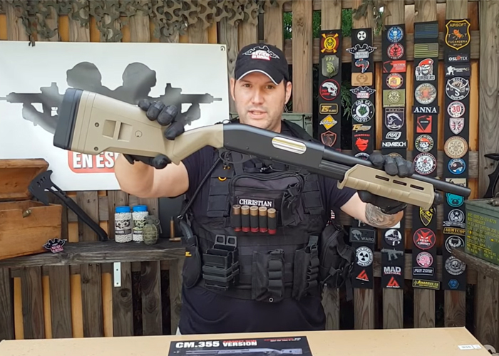 Airsoft Review en Español takes the CYMA CM355 Tactical 870 Shotgun for this review. This has the SGA stock and handguard with the same Tri-burst system with three inner barels as other CYMA airsoft shotguns.