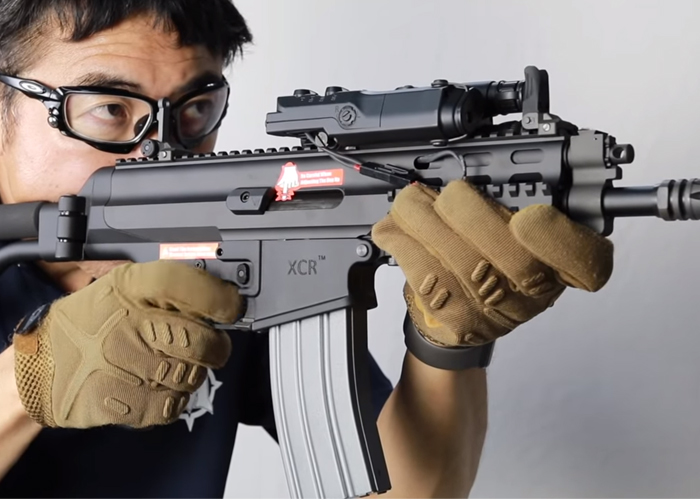 In case you have forgotten, VFC produce fully licensed XCR AEGs from Robinsons Armament for some time now. In this video, Mach Sakai tries out the XCR-L Micro, a stubby AR-style AEG that is made of polymer. It has a folding stock and comes with all the markings.
