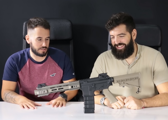 The KJ Works M4 Gas Blowback Rifle gets a two-tone look. Cesar and Javier of 0'20 Magazine show us the new KJ Works M4 Gas Blowback Rifle that comes with a new handguard as well as folding sights.