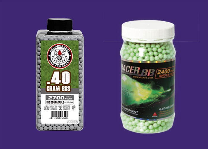 New Heavyweight BBs released by G&G Armament, the .40g BioBBs and .28g Green Tracer BBs... "Introducing our heavyweight contenders of competition grade BB's.