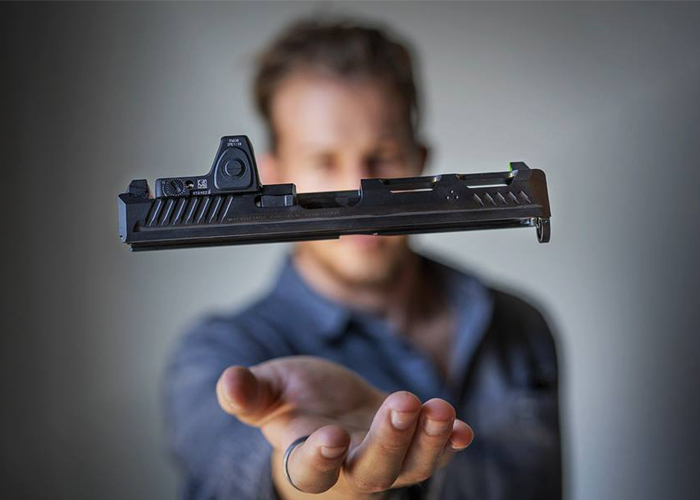 Strike Industries give us a sneak preview of their upcoming slide for the Glock 17 pistol. This slide allows you to mount a microdot sight for better aiming. Now will they allow for an airsoft version of this slide?