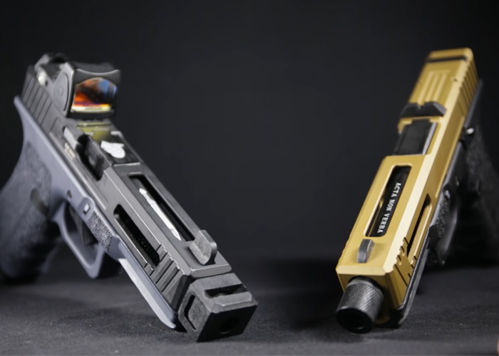 0'20 Magazine compares a Secutor Gladius Custom to the new Secutor Gladius Acta Non Verba. The Acta Non Verba is a Gas and CO2 Blowback Pistol that was just released with the Custom version being the same pistol that is equipped with more accessories.