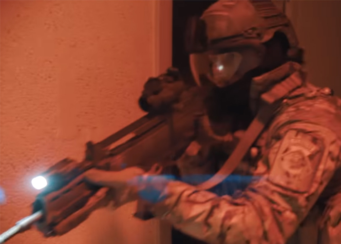 ScarFab94 reviews the E&C AR4168 DEVGRU AEG. Based on the HK416 design, this is a compact version that comes with a Geissel-type handguard and a suppressor. The body is metal with the gearbox having 8mm bearings and low resistance silver wiring.