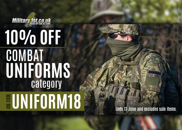 It's the Combat Uniform category that goes on sale this week at Military1st.co.uk. Get 10% off your purchases in this category by using the discount code they provide here...