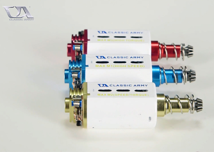 Now in stock at airsoft retailers is the Classic Army MAX Series. You can choose between high torque (M3) or high speed (M1), or speed and torque (M2), and long and short versions... "Our MAX Series Motors have arrived!