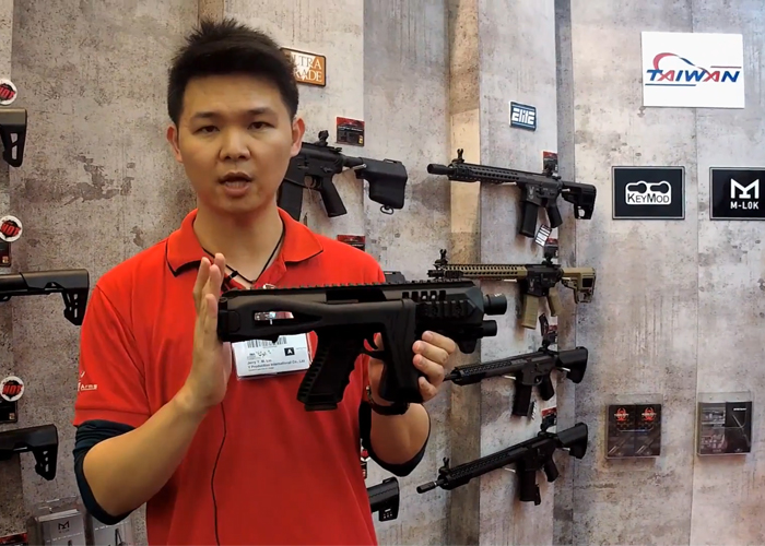 King Arms joins the SBR with the 9mm-style magazine trend as they have one on display at the IWA Outdoor Classics 2018. Jerry explains the AEG showing how it was designed, including the PDW-style stock which has enough room for a bigger battery.