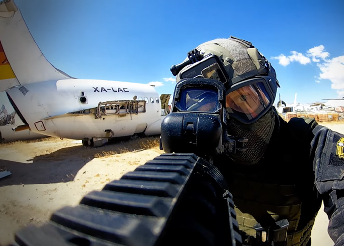 Brain Exploder gets to play with planes parked in the Mojave Desert in this airsoft gameplay video...