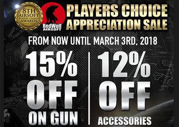 RedWolf Airsoft are celebrating another win to start the year right and they are celebrating it with their fans with their Players Choice Appreciation Sale...