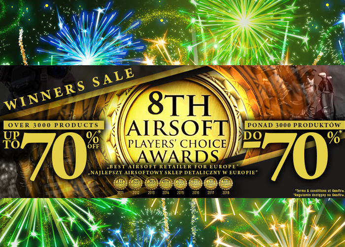 Gunfire are now celebrating another win at the 8th Airsoft Players' Choice Awards and they got a special sale for you... "The Winners Sale is on! We want to thank you for your support!
