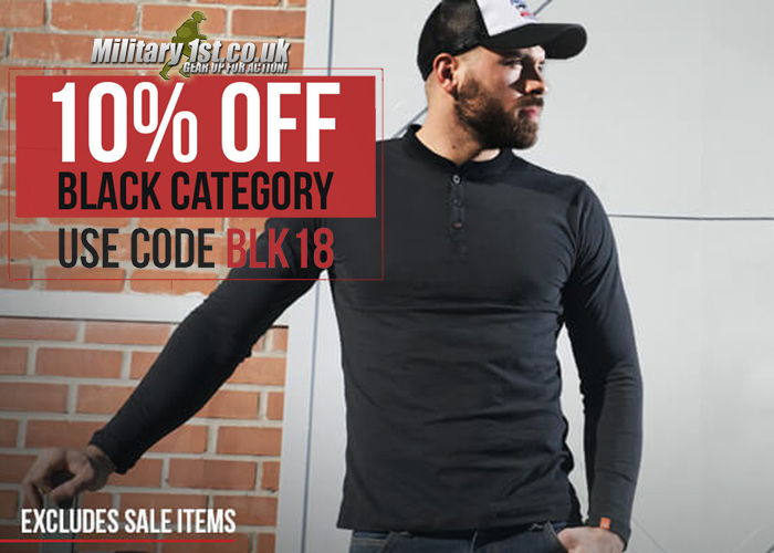 I see your red door, I want it painted black. But before I get carried away by The Rolling Stones, it's Back to Black for Military1st.co.ukright now. You can get up to 10% off all your purchases in the Black category... "Back to Black!