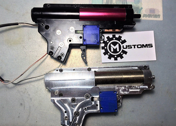 Red Army Airsoft reports about Russian airsoft parts maker M.Custom make CNC D16T Aluminium Gearbox halves for the ARES Amoeba with EFCS plate. These halves allow you to easly tune the gearbox for 200 m\s 0.2 bbs.