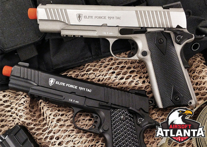 The popular Elite Force 1911 Tactical CO2 Blowback Pistols are in stock at Airsoft Atlanta and you can select between the Silver and Black colours...
