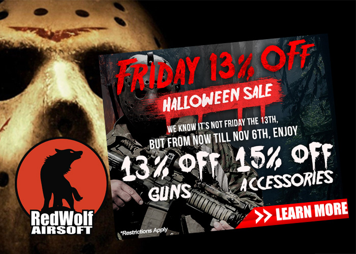 It's Friday, though Friday the 13th took place took place two weeks ago, RedWolf Airsoft are having Friday 13% Off Halloween Sale. This sale does not end today and will go up to the 6th of November.