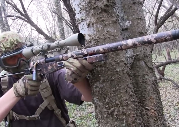 USAirsoft spots a highly customised and strange looking bolt-action airsoft sniper rifle. Well, it's called a VSR-X, which probably means it is based on the Tokyo Marui VSR-10 bolt action airsoft sniper rifle.