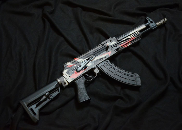 Marry your passion for cars with your passion for airsoft with this Bunny Custom AUDI RS6 x AK105 Tactical GBB Rifle from Bunny Workshop. This is based on the GHK AK105 GBB Rifle which is given a Cerakote AUDI RS6 Pattern coating.