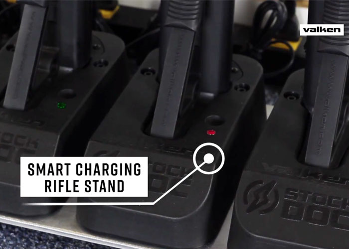 Learn more about the Valken Airsoft Stock Doc System that acts as a charger and a rifle stand at the same time...