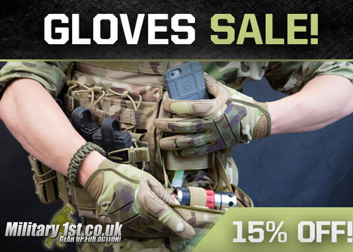Your tactical gloves all worn out and you need a new pair? You can get a pair or more at discounted prices as Military1st.co.uk are having a Gloves Sale with their stocks at 15% off... "It's the Military 1st Gloves Sale!