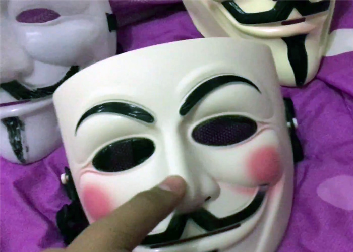 The Guy Fawkes Mask, made famous by the V for Vendetta movie, used by the Anonymous hacking collective, and by activists, can now be used for airsoft as there is a version that comes equipped with mesh protection for the eyes.