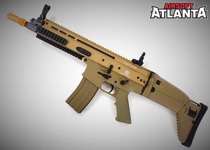 Fully licensed FN SCAR-L AEG with metal gearbox available in Tan and Black at Airsoft Atlanta... "The FN SCAR-L Metal AEG Rifle. This is a metal gearbox, full AEG rifle OEM by Dboys.