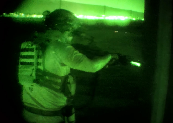 The Brain Exploder gets to play in the dark this time, and using his Night Vision gadget to have an advantage over the OPFOR. Well, that's what NVs do in low light conditions...