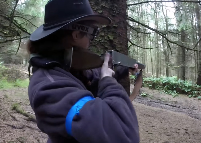 A custom lever action airsoft rifle comfortably hitting targets with automatic rifles, better guess what the base of this airsoft rifle in this Scoutthedoggie video... "A Home Made airsoft item, that actually works, now here's something unusual.