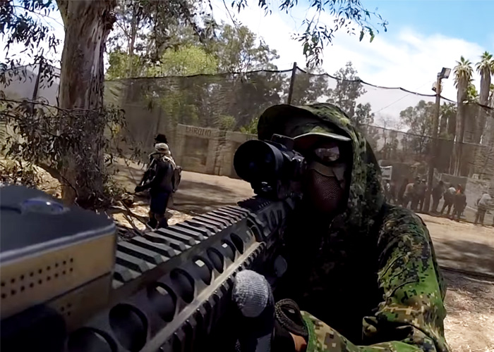 Unicorn Leah turns into an airsoft sniper with the G&G SR25 during a game at the Wildlands Airsoft Park...