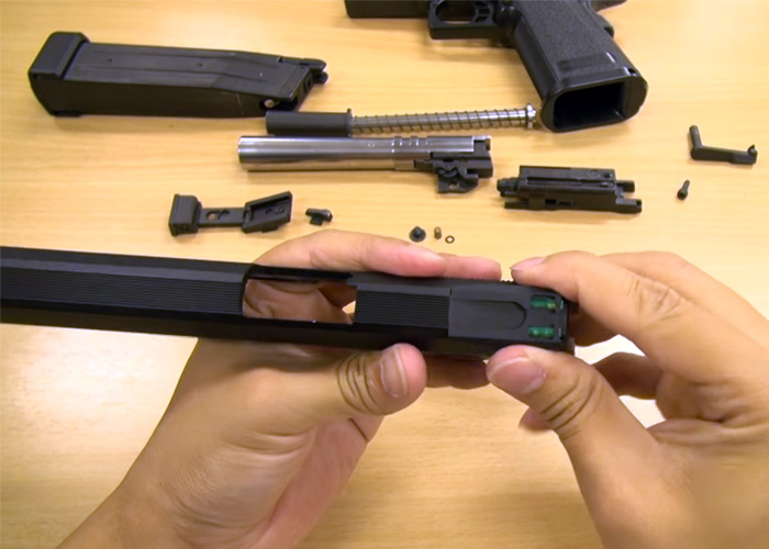 Video from Laylax showing you how to install the Nineball Fibre Optic Sight for the Tokyo Marui Hi-Capa 5.1 GBB Pistol. Installing this gives you a sight on your pistol that allows you faster target acquisition in low light conditions.