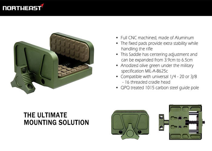 WGC Shop are taking pre-orders for the Northeast Jaws Saddle which allows you to mount your rifle on a camera tripod so a stable and precision shooting. Colours available are RAL 8000 and Olive Green.