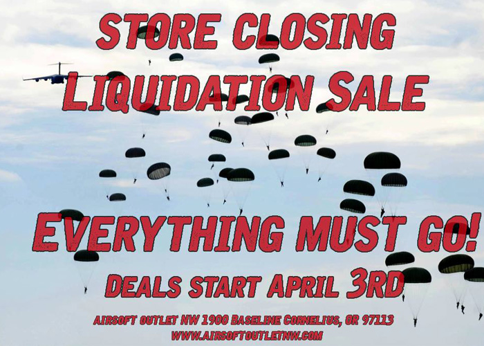 We just learned over the Easter Break that Airsoft Outlet Northwest are ending the airsoft business and having a liquidation sale...