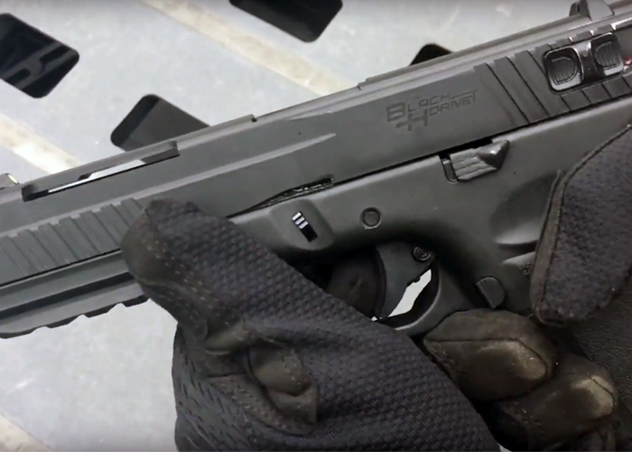 We see a better video of the upcoming APS The Black Hornet CO2 Blowback Pistol this week showing it to be a full-auto, BB-spewing monster that can work as good primary in CQB games.