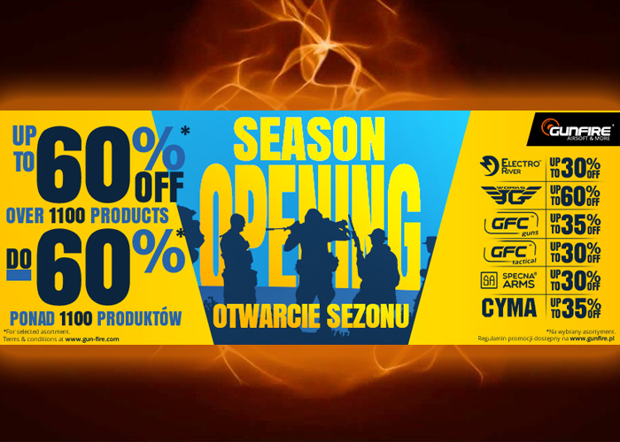 The airsoft season is formally open, as most airsoft players from the Northern Hemisphere will be finally coming out of hibernation as the sun's shining and that means, more airoft. Gunfire are having an Opening Sale with up to 60% off on selected items...