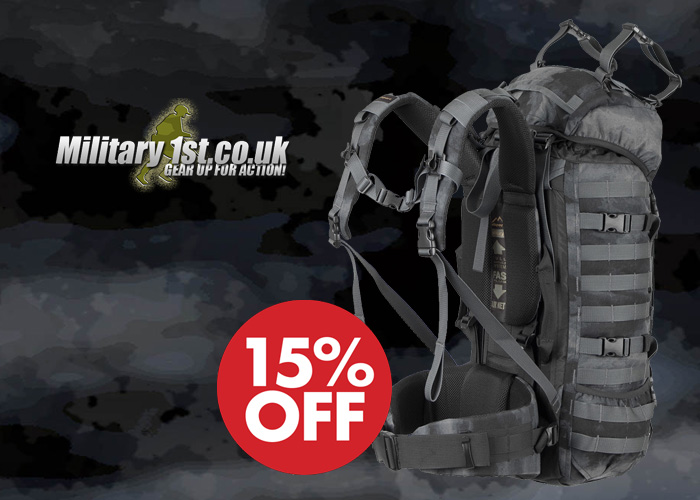 Get 15% off the Wisport Raccoon 45L Rucksack A-TACS LE that is available at Military1st.co.uk. This and more are on heavy discounts of up to 20% for this week's special offers... "Discover this week's special offers at Military 1st online store!