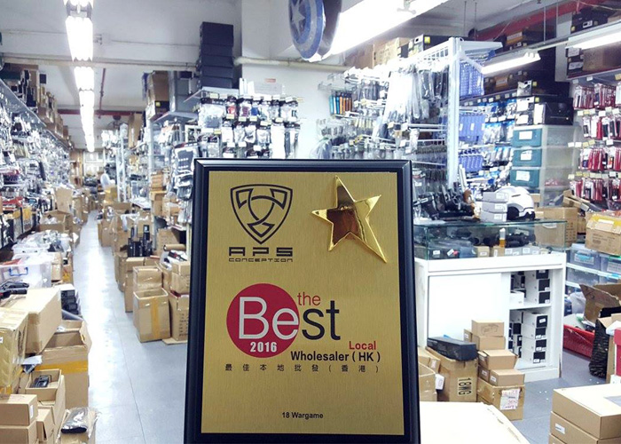 18 Airsoft proudly present their award from APS for being their best wholesaler in Hong Kong...