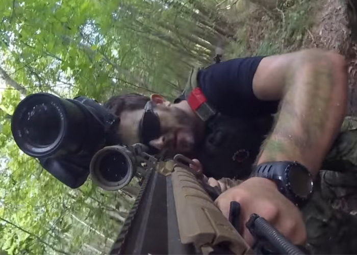Video footage from the Swamp Sniper showing a sniper/DMR gameplay with Jet of DesertFox Airsoft...