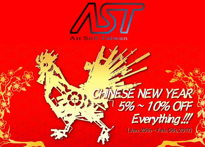 It's Chinese New Year this weekend, heralding the Fire Rooster, will it bring a better year? Depends on your Chinese horoscope, and Airsoft Taiwan are starting right with a Chinese New Year Sale... "AST is celebrating Chinese New Year with a sale!