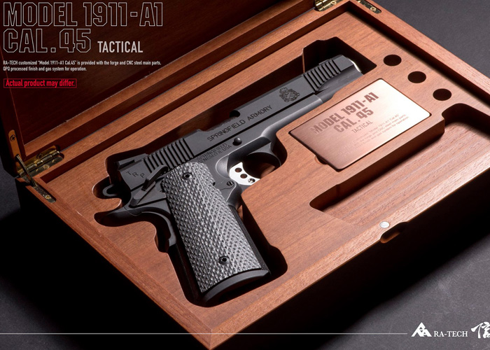 RA-Tech has on YouTube a teaser video of an airsoft version of the Springfield Armory TRP. The TRP series are based on the 1911 pistol and have been designed to work under the worst conditions. It looks like it will be released with a special wood case which is a nice touch .