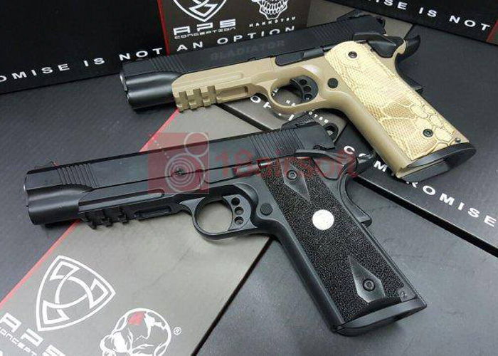 18Airsoft announces that the new APS Marcux and & Crixus Gladiator Gas Blowback Pistols are now in stock. These Gladiator pistols are based on the railed 1911 pistol designs that took 2 years of research and development before they got released.