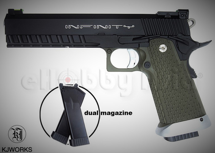 In stock at eHobby Asia is a Limited Edition KJ Works KP-06 Gas Blowback Pistol in OD and comes with a Gas CO2 Magazine.