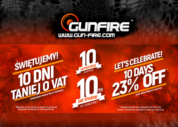 It's Gunfire's 10th year in business and they are taking 23% off the price of your order as they celebrate this milestone with you... "This is a very special year for us - we celebrate 10th anniversary of our existence on the airsoft market!