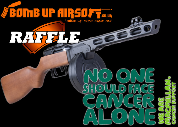 Move quickly if you want to be a proud owner of the Ares PPSH as you Bomb Up Airsoft are putting up one for raffle to raise funds for Macmillan Cancer Support. All for a good cause, and you get an airsoft gun if your name gets picked up in the raffle.