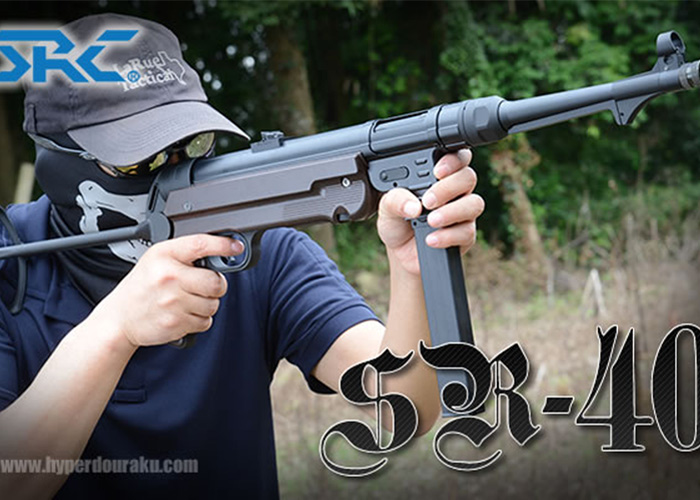 A good AEG for military reenactors to collect, the SRC SR-40 Electric Blowback AEG is reviewed by the Japanes Airsoft Blog, Hyperdouraku. This is made of allow with faux wood finishings.