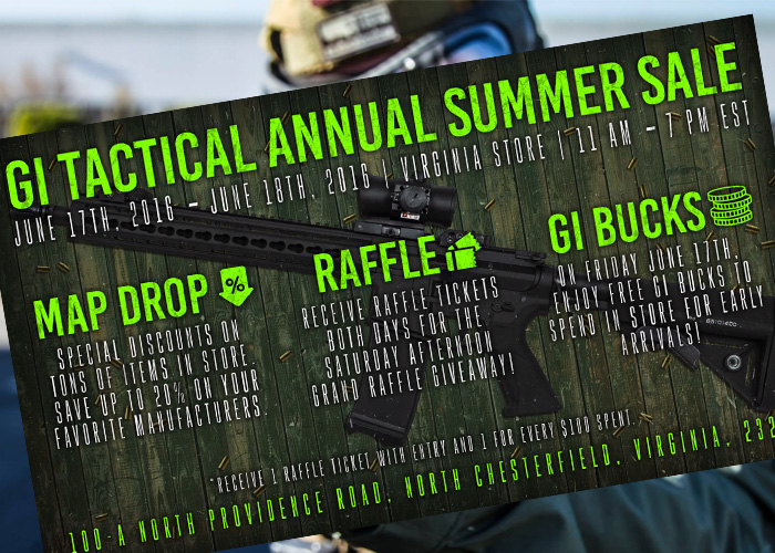 It starts today, Airsoft GI's GI Tactical Summer Sale. This is not an online event as customers will need to visit the GI Tactical brick and mortar store to get the opportunity of MAP drop, raffles, and more and this ends on tomorrow, the 18th of June 2016...