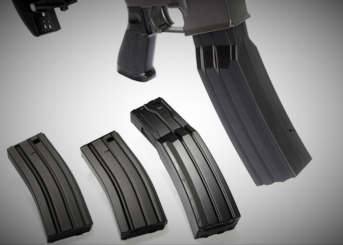 Your choice of M4 magazines of different load capacities at Laylax right now. The Garuda M16/M4 <130/300/900 Magazine Series can fit most AEG rifles including the Krytac Trident Series.