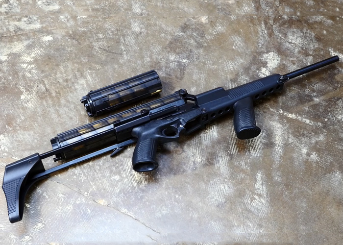 Gunfire dropped by their neighbours at the IWA Outdoor Classics, RedWolf Airsoft, where they got hold of Tim Selby (also of RWTV) to tell more about the Tokyo Marui AA-12 Automaric Electric Shotgun (AES) and the GHK Steyr AUG GBB...