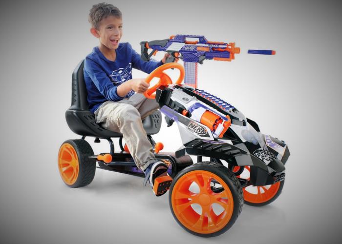 Come`on! Admit that you like this racer made for NERF shooters by Hauck Toys. We do like it and would be nice to have something like this for a change.... "Creating a stir worldwide is Hauck’s NERF Battle Racer.