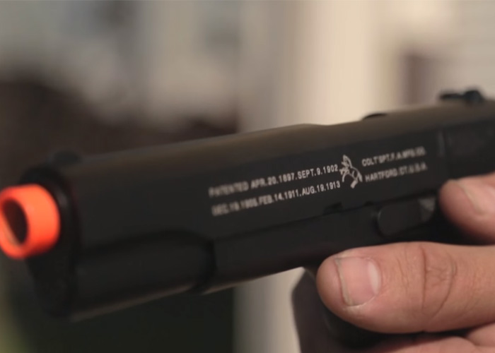 This episode of Evike.com's "The Gun Corner" covers the fully licensed KJ Works Full Metal M1911A1 Blowback Pistol. Powered with CO2, this has an initial muzzle velocity of 300-330fps on 0.20g BBs.