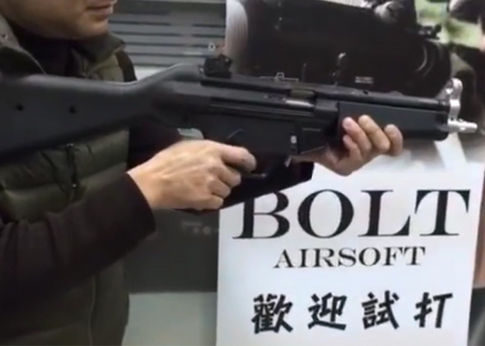 Bolt Airsoft posted on their Facebook page a video showing the prototype Bolt MB5 BRSS AEG being tested. This is probably is the first MP5 AEG that comes with blowback and recoil features.