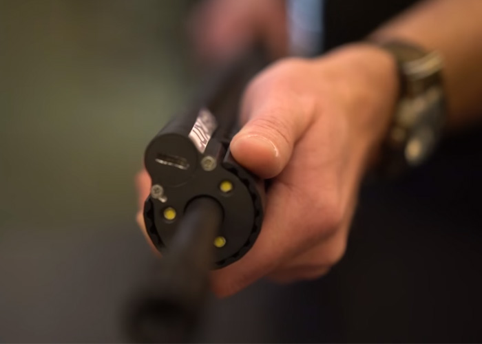 The Gun Collective found something at the SHOT Show 2016 that you might be interested in. The product is the Lux180 Model 34-36 which is a weaponlight that can be integated at the front of the hanguard and wraps around the barrel.