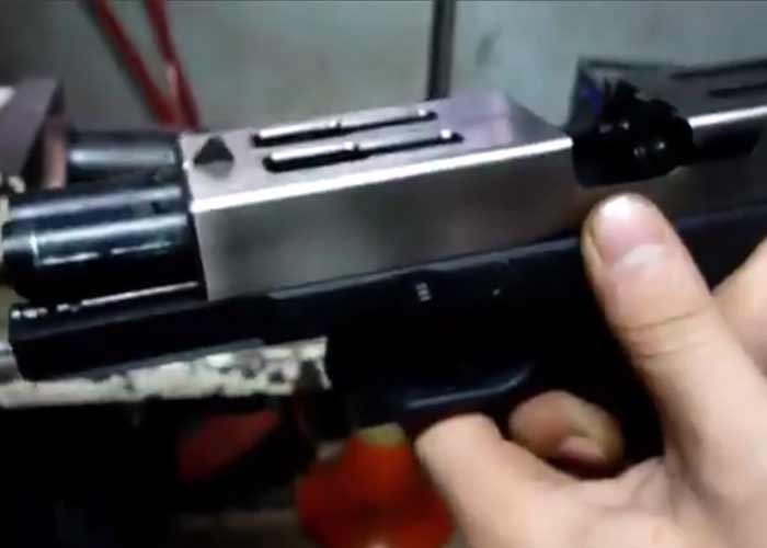 Looks like WE Airsoft are enjoying developing double barreled airsoft pistols. After the release of their Double Barel 1911 GBB, they went back to work on another pistol, and it looks like a Double Barrel Glock 18C Gas Blowback Pistol.
