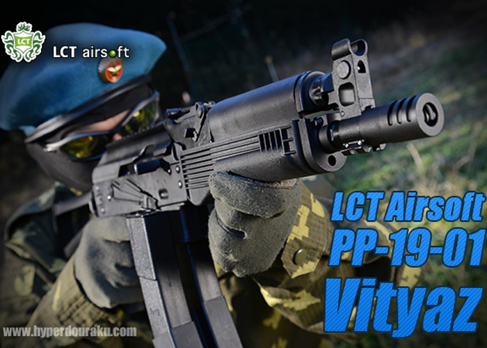The LCT Airsoft PP-19-01 Vityaz AEG, the first Vityaz airsoft gun mass produced, gets reviewed by Hyperdouraku. LCT Airsoft also produced the double magazine that have a capacity of 50 rounds on each.